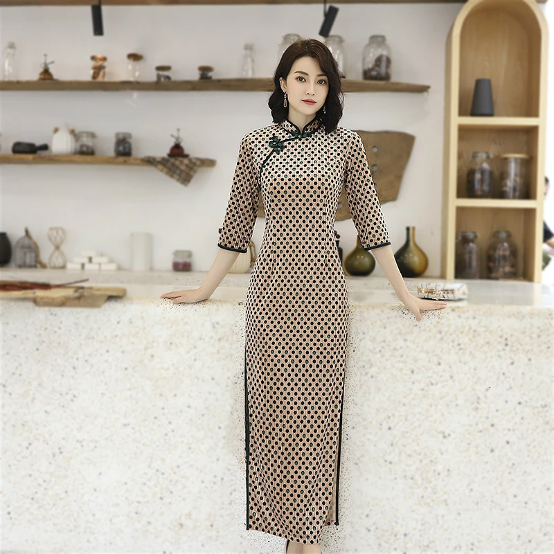 Sheng Coco Chinese Velveteen Dot Pattern Design Evening Dress Qipao Long Sleeve Elegant Cheongsam M 4xl Plus Size Women Clothing Cheongsams Aliexpress